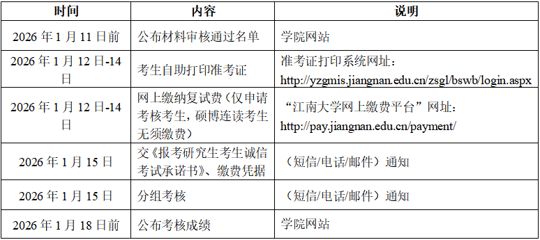 根据学校博士选拔流程,材料审核通过的考生进入学院综合考核阶段,考生应在规定的时间参加考核,未经考核者不得录取。请考生在江南大学研究生招生网下载专区(点击)仔细阅读并遵守《江南大学博士研究生考试考场规则》,考核前签署《报考研究生考生诚信考试承诺书》,按要求提前做好考试准备,文明诚信考试。考核将采用线下考核的方式进行,具体安排如下。