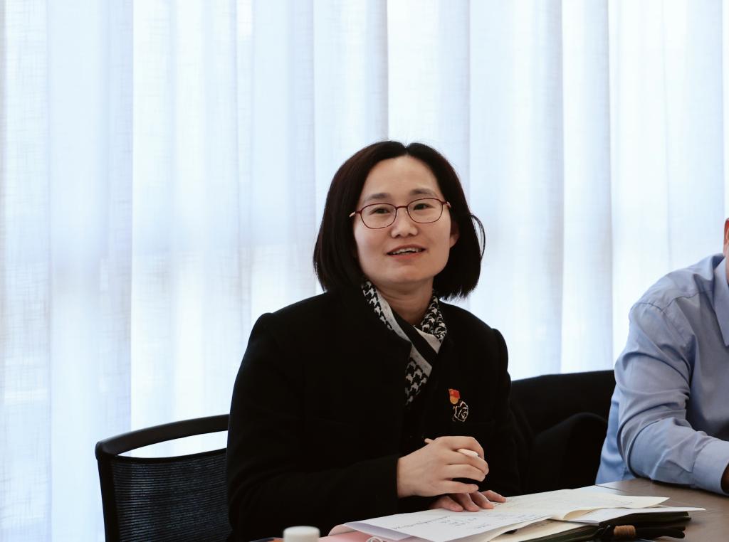 纤维工程与装备技术学院党委书记陆敏芝主持会议并领学